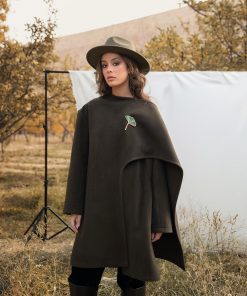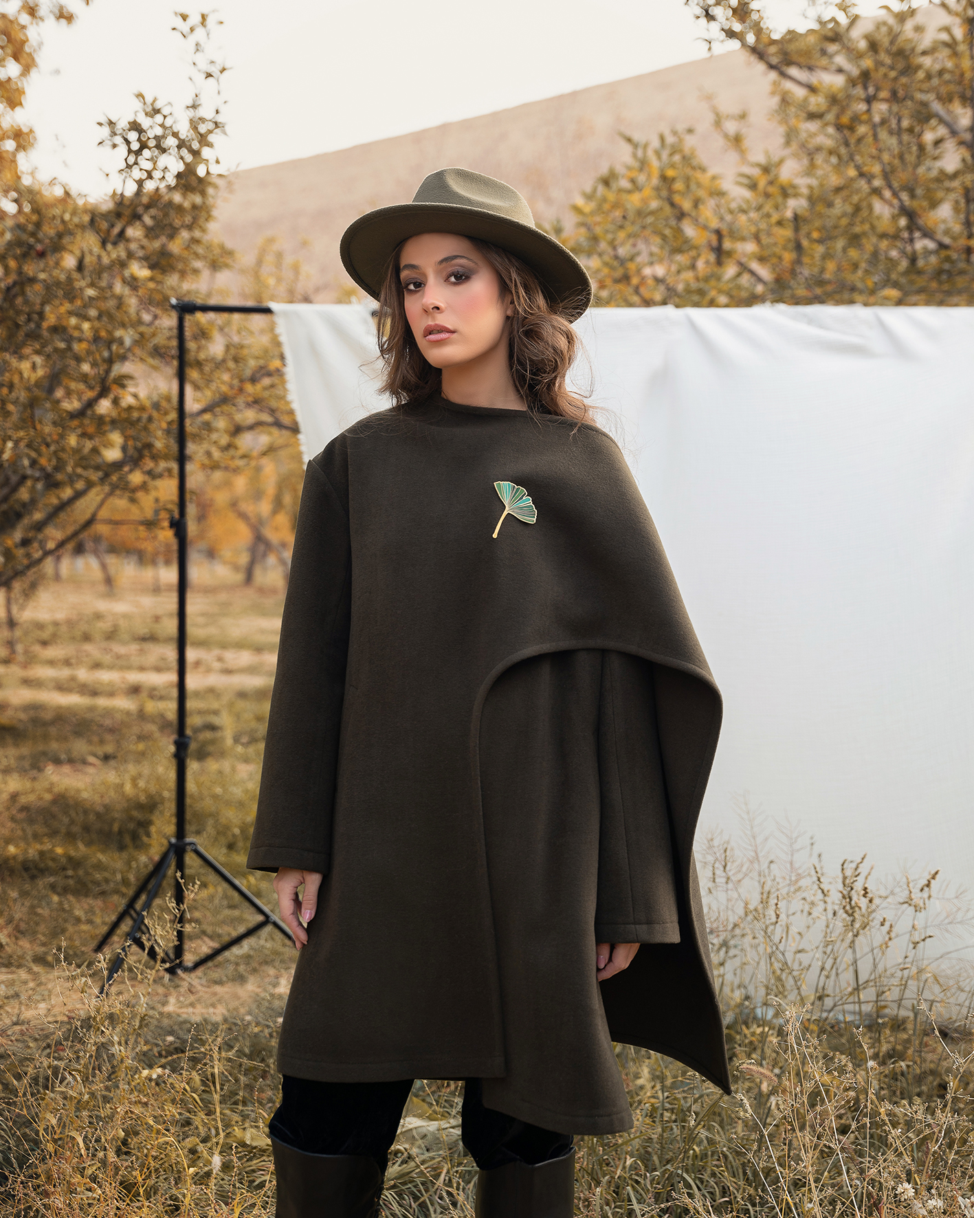 • طراحی: یقه بلند و آزاد با حالت موج‌دار